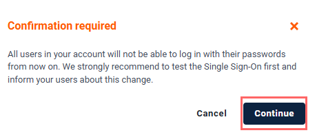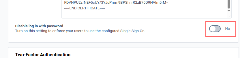 3. Under SSO Authentication Settings, enable Disable log in with password.