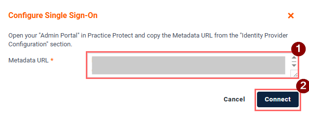15. Paste the Metadata URL you copied from Step 8 into the Metadata URL field, then click Connect.