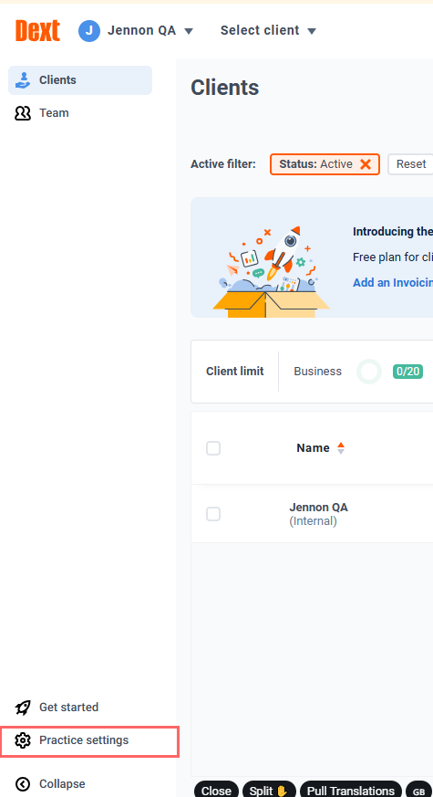1. Within Dext open Practice Settings.