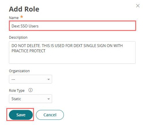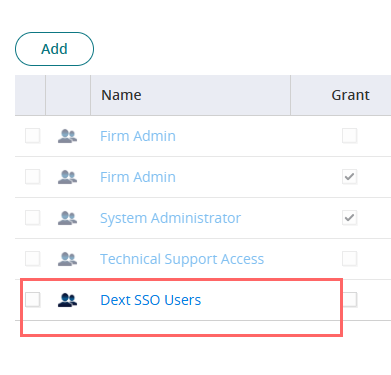 2. On Core Services, Click Roles > Add Roles. Create a role and set the name field to Dext SSO Users. Then Save.